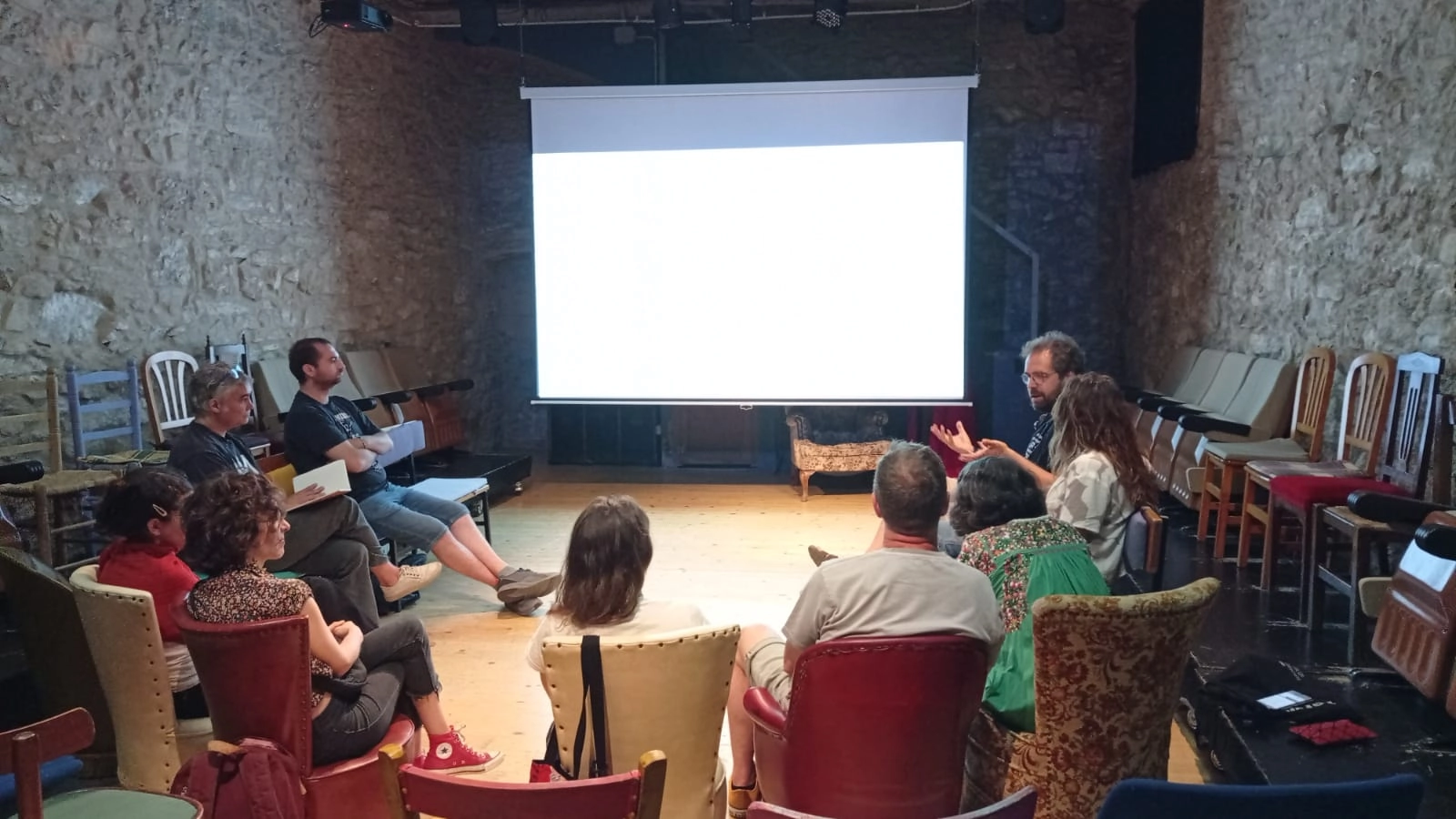 L'últim dia, a la Casa del Teatre Nu, el nostre equip va explicar el projecte del Teatre des de dins, amb la participació de l'ex-professora de la Cérvola Blanca Raquel Martínez. També vam fer el cas pràctic del Teatre de prop, amb l'espectacle de la Senyora de Tous, un col·loqui postfunció i un taller d'expressió artística, en el que també hi van participar artistes residents.