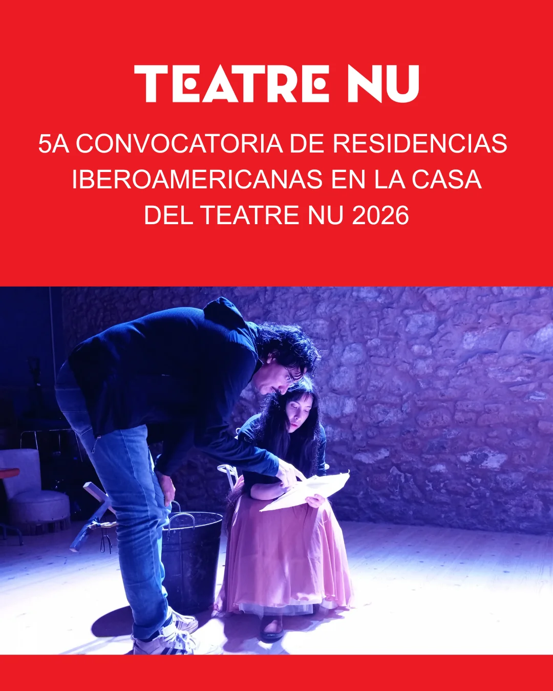 Teatre Nu acull propostes creatives de totes les disciplines artístiques, integrant-les en la comunitat. Aquestes residències volen donar suport a la creació i a la producció d’arts escèniques, alhora que fomenten la cooperació, la professionalització i l’impacte social dels projectes.